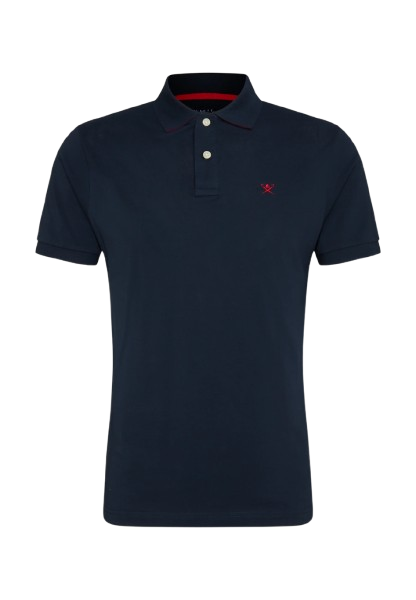 تيشيرت أنيق للرجال باللون الكحلي ، مزود بياقة كلاسيكية بثلاثة أزرار وتطريز صغير باللون الأحمر على الصدر. تصميم عملي ومثالي للإطلالات الكاجوال الأنيقة أو الرسمية الخفيفة.